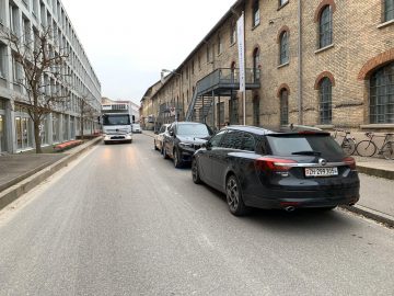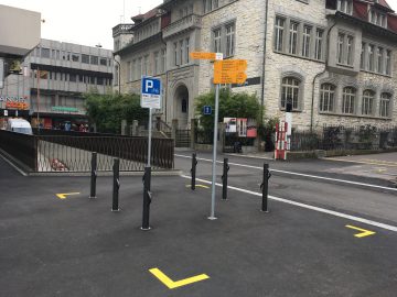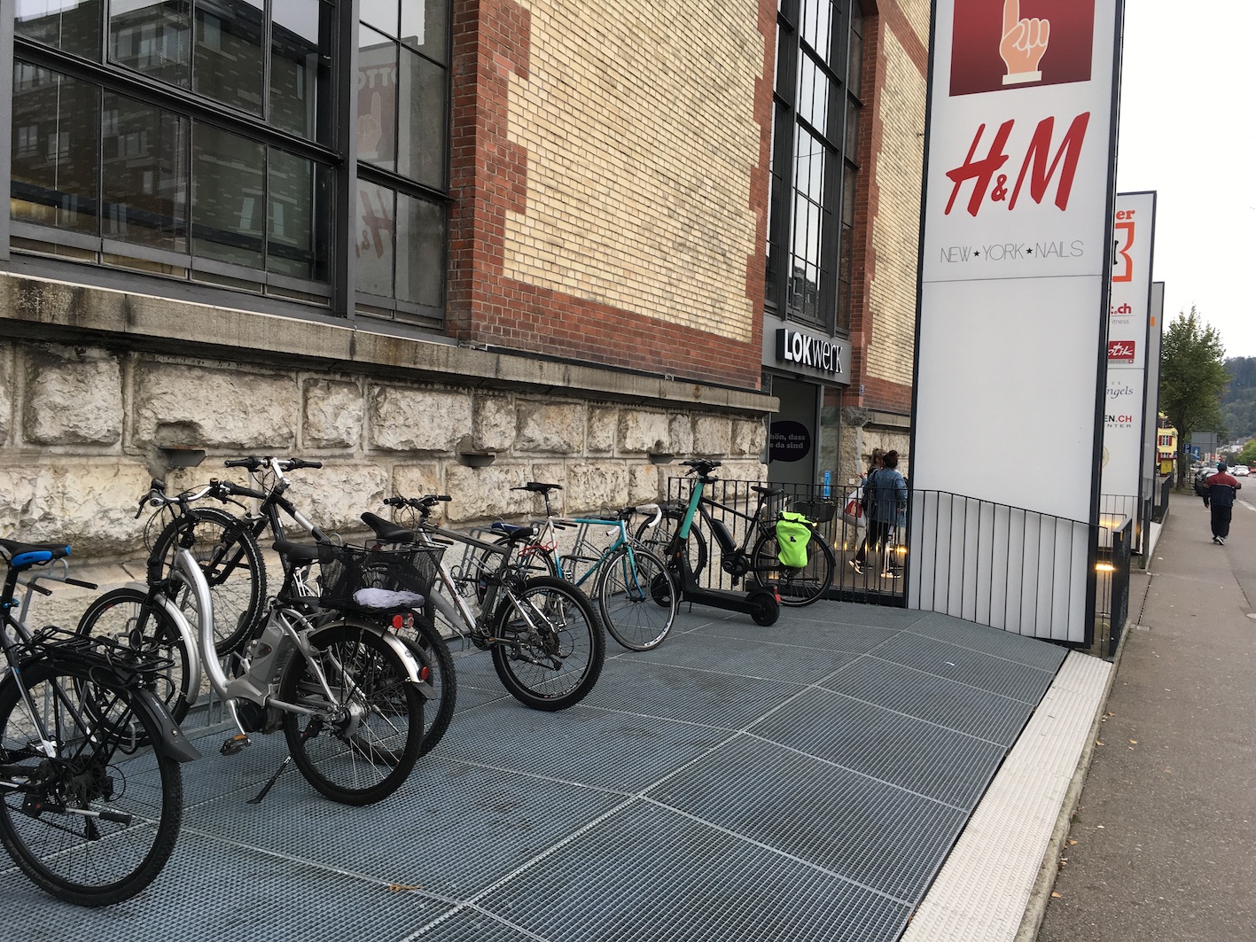 Für eine optimale Parkierung fehlen nur noch ein Dach und eine sichere Zufahrt von der stadtauswärts führenden Spur der Zürcherstrasse her. Test im Velojournal 1-2021